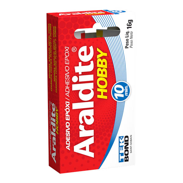 - A cola adesiva Araldite Hobby é indicada para reparos e colagens de pequenas superfícies de materiais lisos, porosos ou irregulares como azulejos, madeira, vidro, concreto, fibras naturais, pedras, a maioria dos plásticos rígidos (exceto polipropileno, polietileno e nylon), metais e outros materiais.