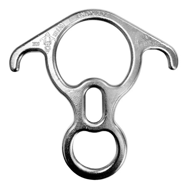 - O freio oito Inbart da Alpen Pass é indicado para trabalhos em altura e resgates.